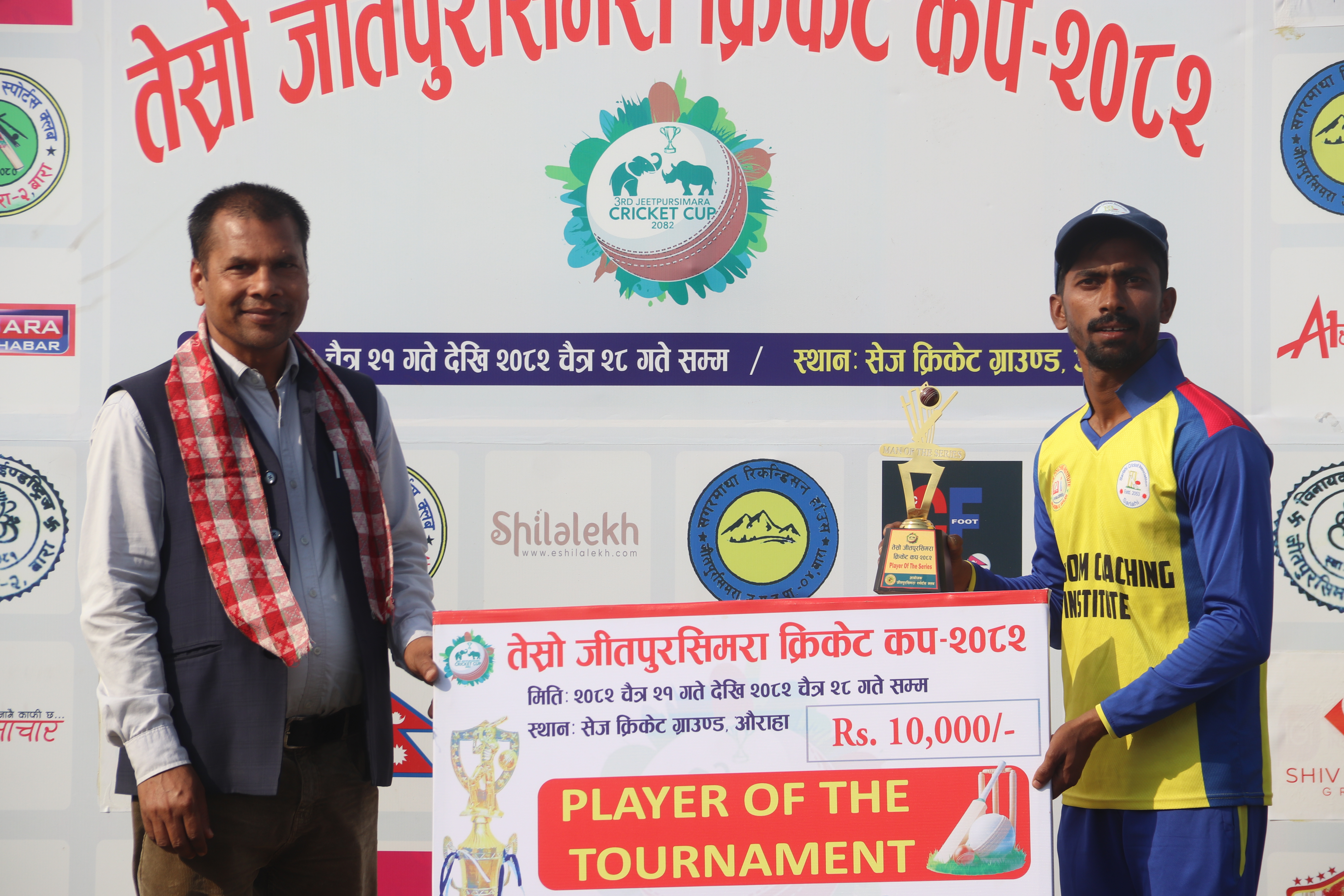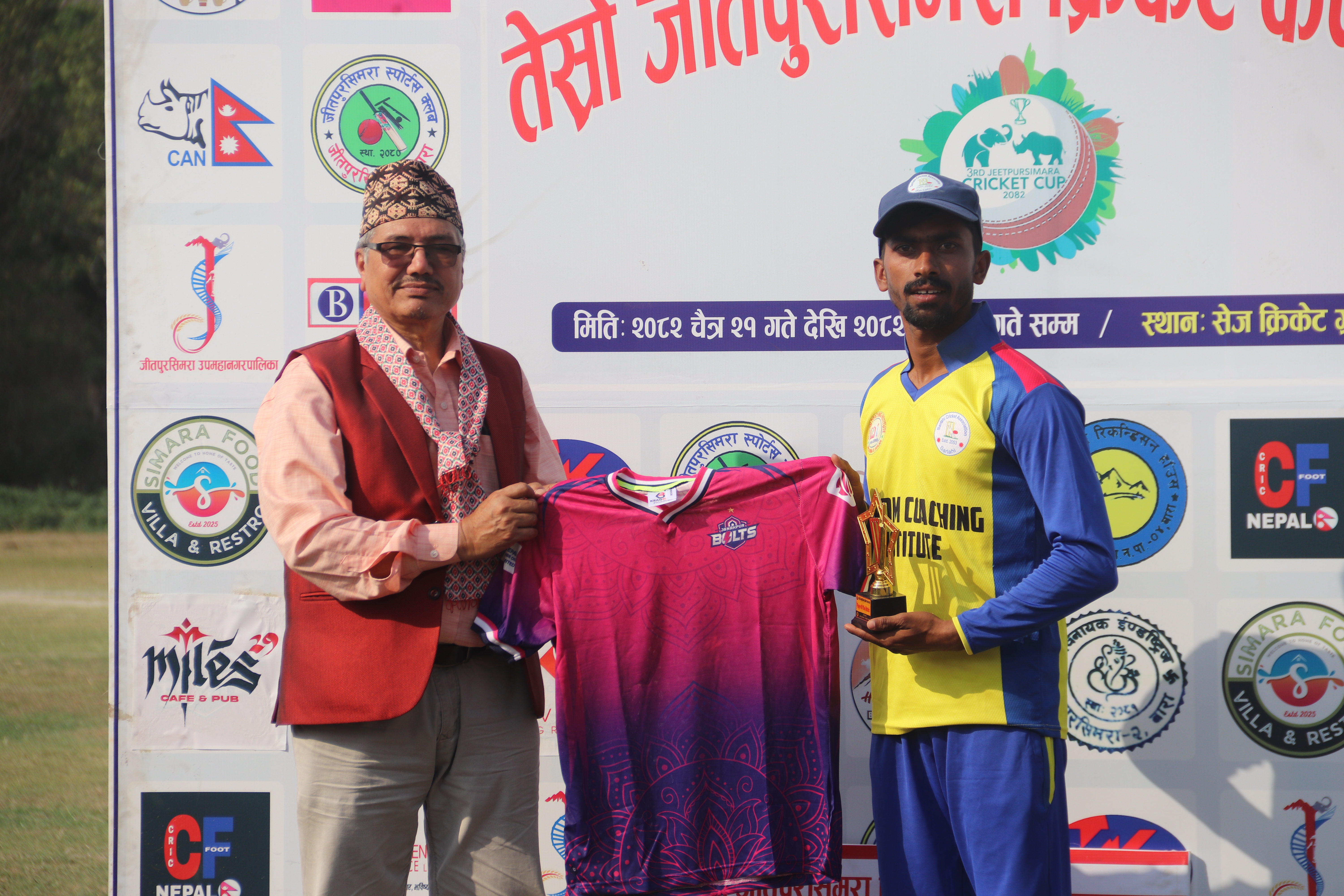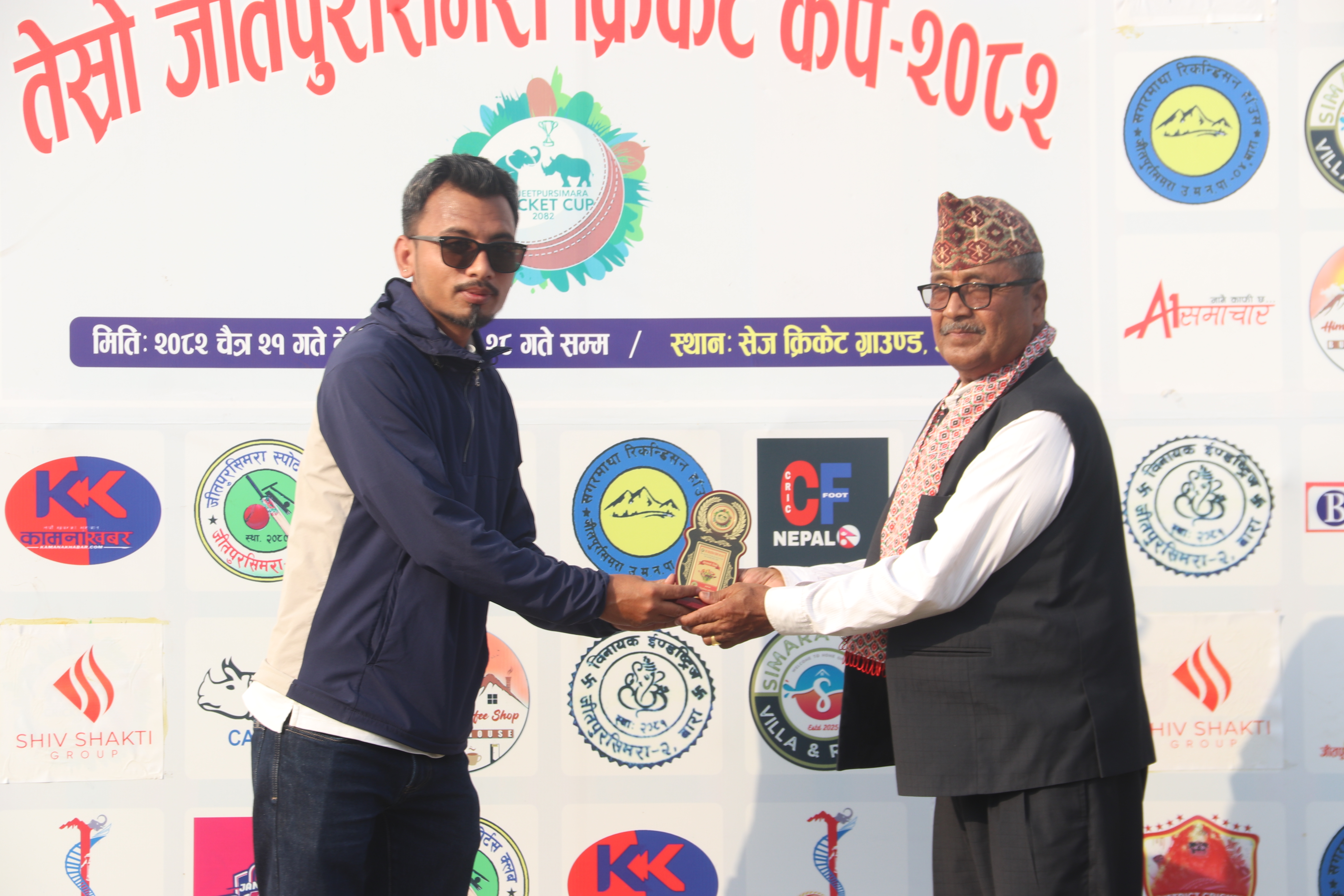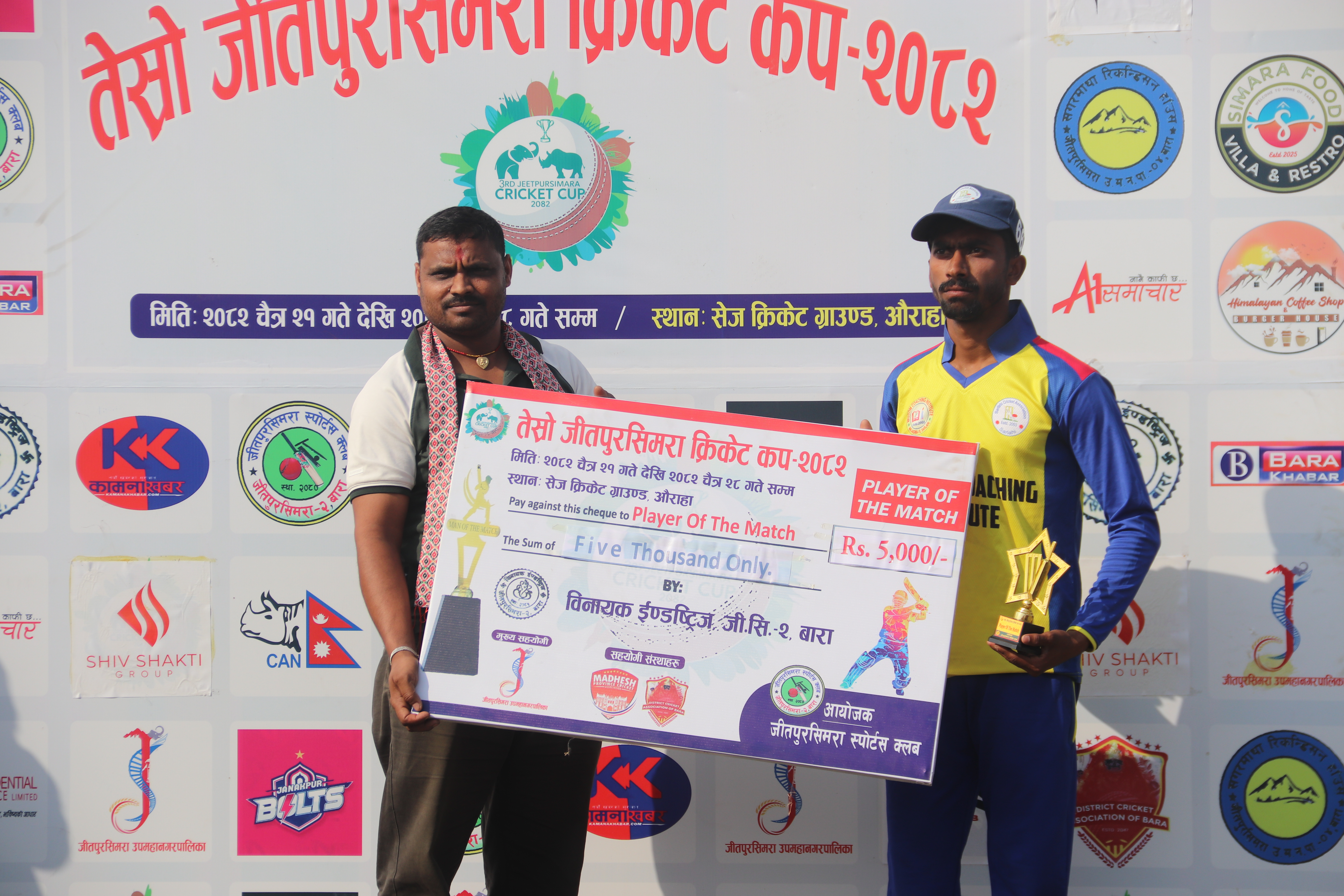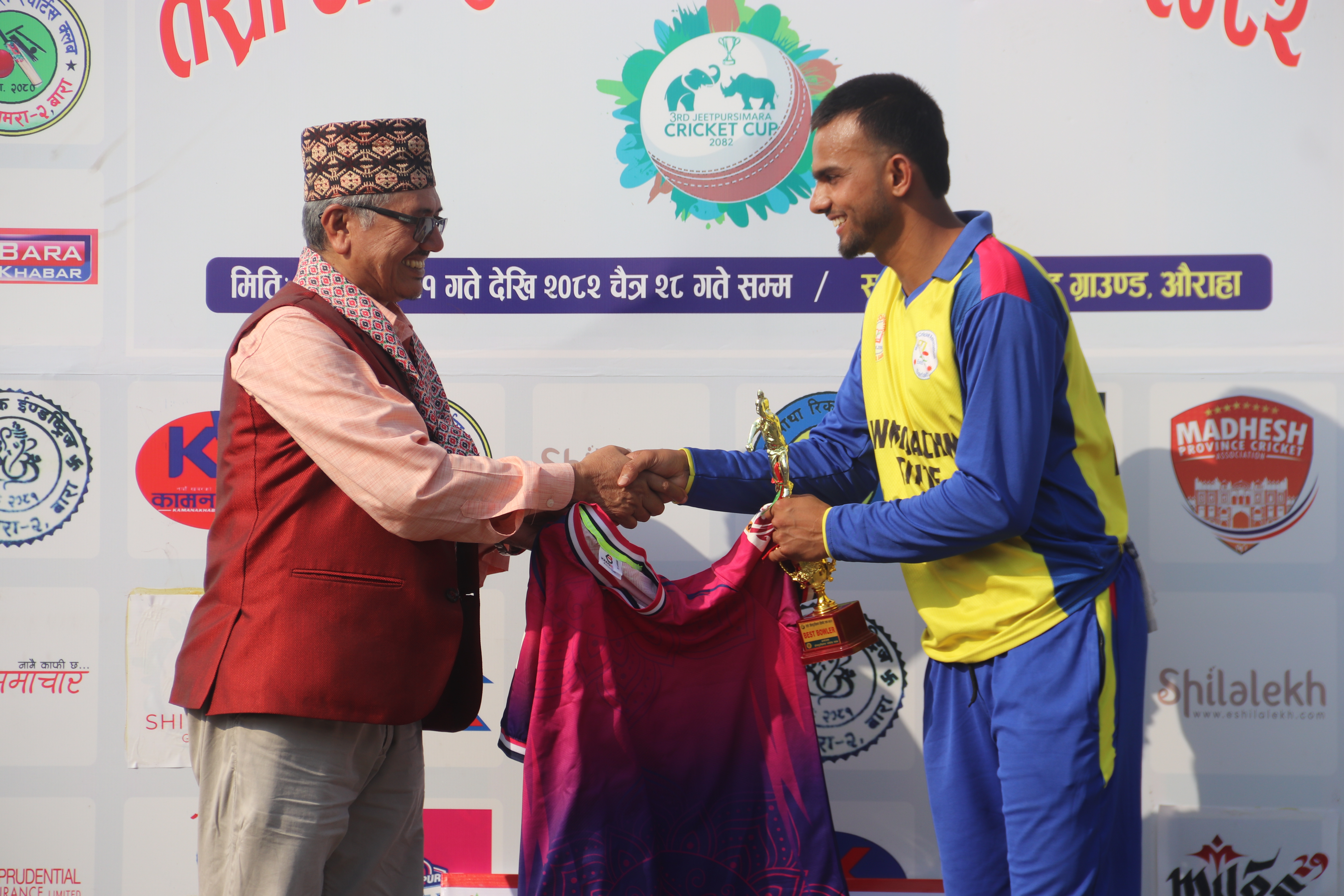 प्रतियोगिताको उत्कृष्ट ब्याटर बारा जिल्ला क्रिकेट संघका साहिल पटेल घोषित भए भने उत्कृष्ट बलर जितेश मण्डल चुनिए। विधागत उत्कृष्ट खेलाडीहरूले जनही ५ हजार रुपैयाँ प्राप्त गरे।