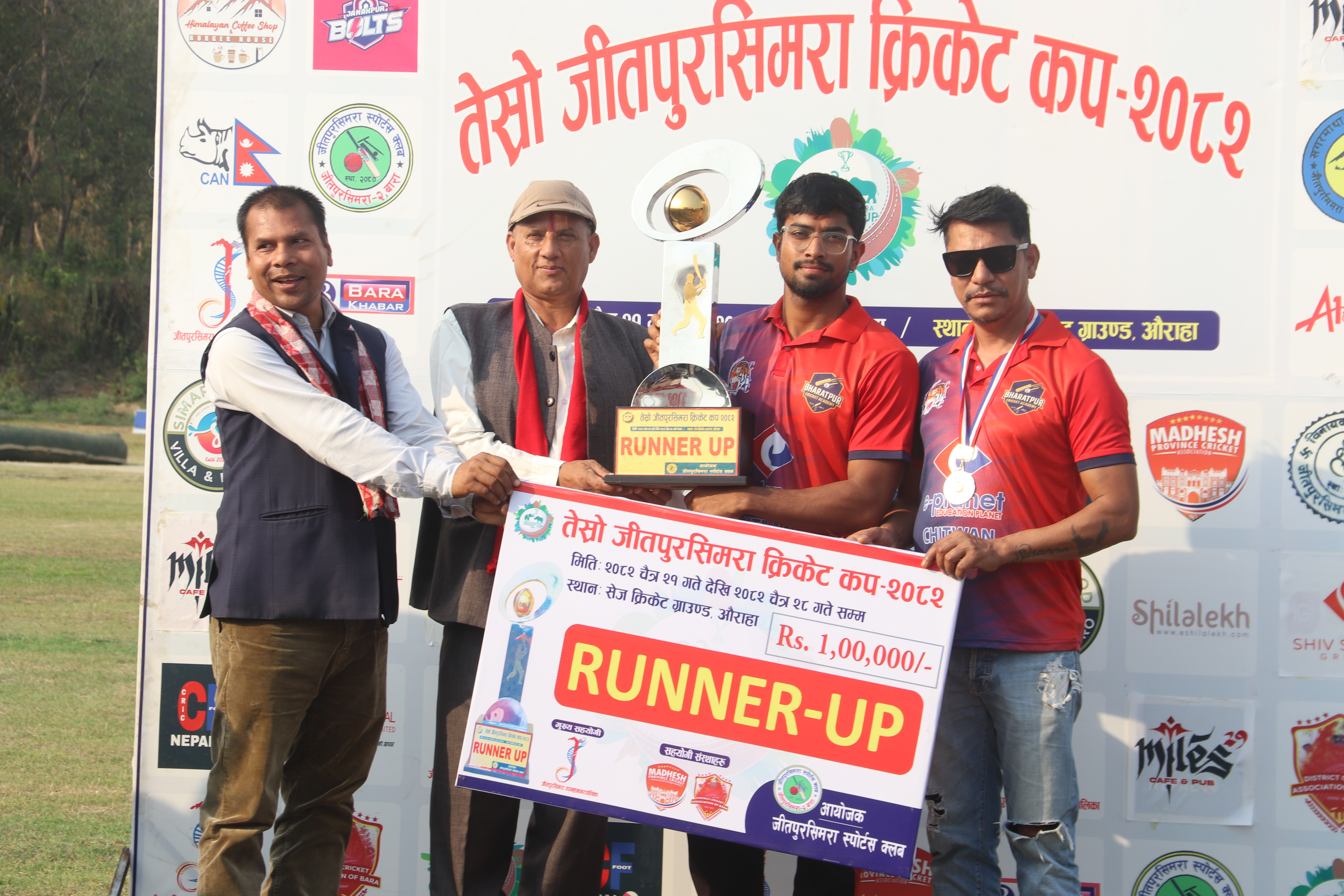 समापन समारोहमा जीतपुरसिमरा उपमहानगरपालिकाका प्रमुख राजन पौडेल, उपप्रमुख भोलाप्रसाद अधिकारी लगायत विभिन्न व्यक्तित्वहरूले विजेता तथा उत्कृष्ट खेलाडीहरूलाई पुरस्कार वितरण गरेका थिए।